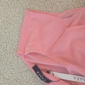 NWT Caara pink Clara midi wrap side buckle dress. Handkerchief hem. Size medium. Built in belt. Zipper on shoulder. Polyester chiffon. No flaws. This is sheer so I would definitely add a slip. Perfect for a dressy event, date night, or wedding guest attire.