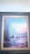 Beautiful framed landscape painting featuring a indigenous village at sunset. Rich colors and detailed scenery.