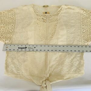 NWT Democracy Blouse Beige S Embroidered Open Crochet Lace Peasant Boho Cottage