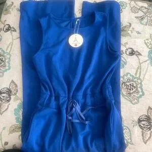 Fits more like XL chic and comfortable jumpsuit. Features a vibrant blue hue. Perfect for versatile styling.