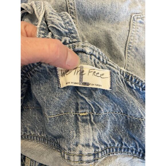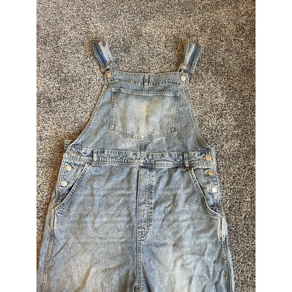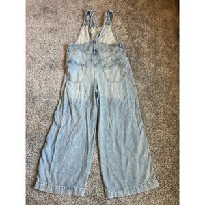 Free People We The Free Slouchy Wide Leg Destroyed Denim Overalls Size Large