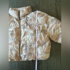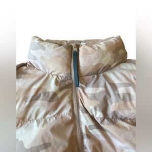 Fabletics Women's Wander Tan Camo Cropped Puffer Jacket Size XXL High Collar
