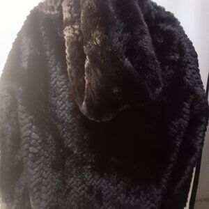 GALLERY NEW YORK CHIC HOODED GROVED FAUX FUR JACKET BLACK SIZE XL
