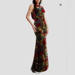 Absolutely stunning and unique Floral Velvet Burnout Open Back Mermaid Gown! 🌹