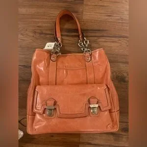 This NWT Authentic Coach Poppy Colored Tote Handbag is spectacular. The silver hardware is brand new and boasts the Coach logo. The leather is a gorgeous pink color. The size of the handbag is large with plenty of interior pockets so that your handbag doesn't feel like a bottomless pit. This bag includes the dust bag with your purchase and was originally $398.