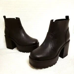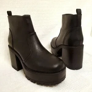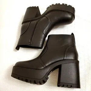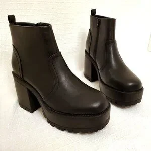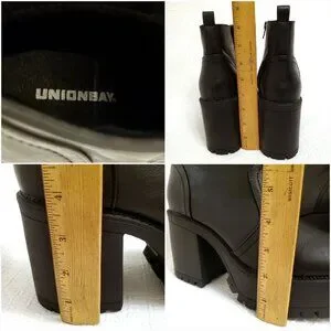 UNIONBAY Women’s Black Paula Platform Heeled Chunky Lug Sole Ankle Boots NWOT - 7.5