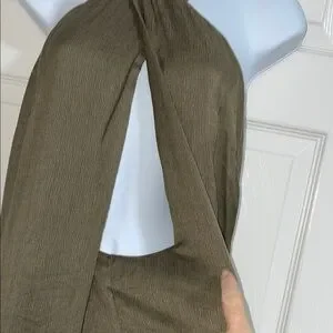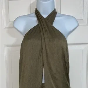 This olive halter romper looks like dress but is actually shorts. The criss-cross halter top straps allow for size adjustments and tie around the neck in the back. A hidden zipper in the back of the shorts allows for easier dressing. This is a classic style that you don’t want to miss out on!