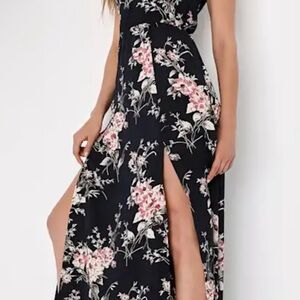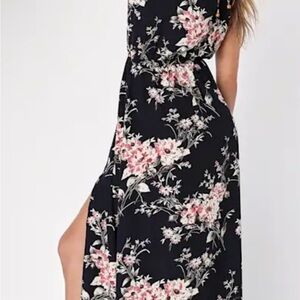 NWT Lulus Feel the Music Midnight Blue Floral Print Maxi Dress