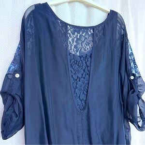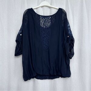 Elegant Silk Navy Blue Lace Blouse