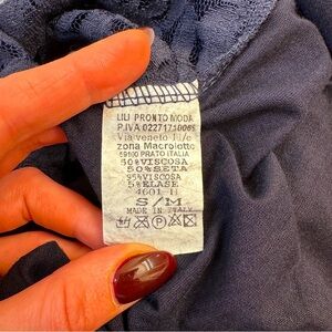 This elegant navy silk blue lace top is perfect for any occasion. Its delicate floral design adds a touch of sophistication to your wardrobe. Pair it with your favorite jeans or skirt for a chic look.