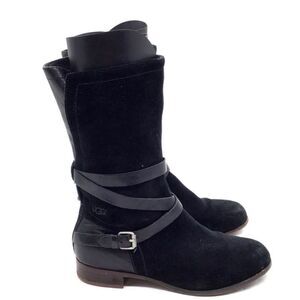 Ugg Women's Deanna Black Suede Leather Riding Boots - Size 7.5