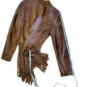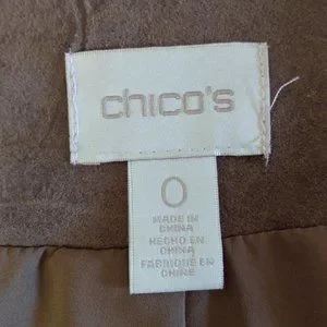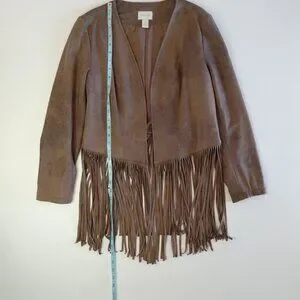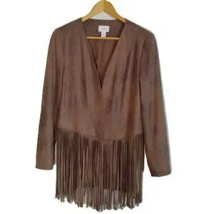 Chicos Jacket Women Size 0/S/4 Brown Faux Suede Fringe Open Front Western Festival Cowgirl
