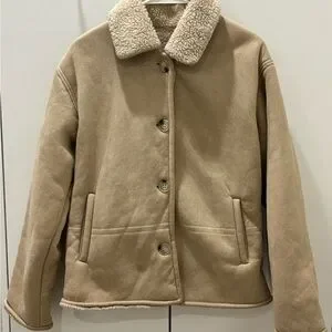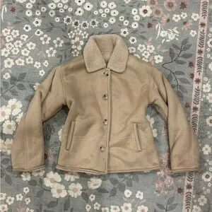 Beige Tan Teddy Button Up Jacket for Women