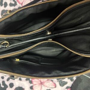 Please review pics carefully. Items Shows minimal signs of wear. Beautiful elegant bag with spacious interior. It could be a Crossbody bag to it just does not have the strips. Ask me for any question.