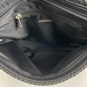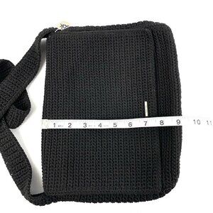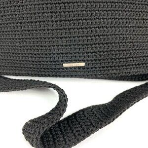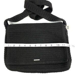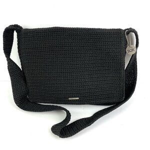 The Sak Handbag Black Knit Fabric Crochet Flap Boho Shoulder Bag Purse.