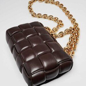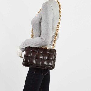 Bottega Veneta Brown Woven Leather Maxi Weave Padded Cassette Chain Bag