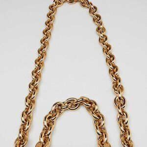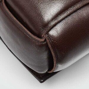 This stylish and current bag from Bottega Veneta is made from a puffy lambskin leather in an exaggerated size and woven pattern. The bag has a simple shape with a flap top and long, a chain top handle and shoulder strap. The interior is perfect for holding essentials.