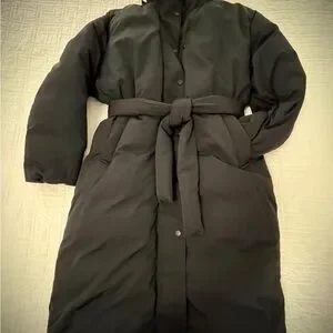 Everlane Duvet Puffer coat. Full length, extremely warm, water resistant. Detachable hood and belt.