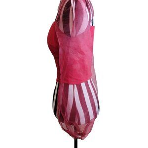 Long sheer organza puff sleeves, elastic cinched hems
