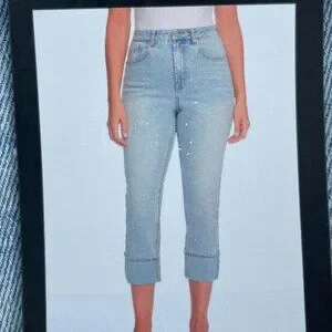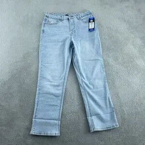 Stylish cropped jeans with a straight-leg design in a versatile light blue wash, suitable for casual outings or relaxed gatherings.