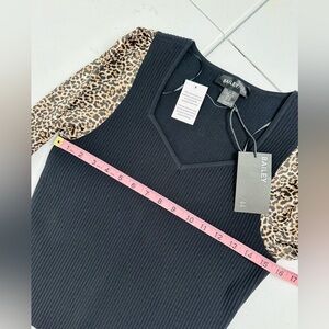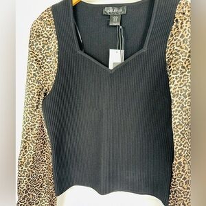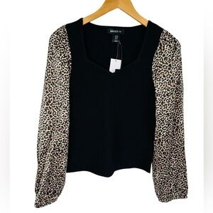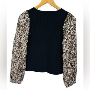 NWT Bailey 44 Animal Print Ribbed Knit Long Sleeve Blouse