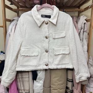 Zara textured over shirt jacket gold buttons size Large 3175/151/712