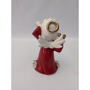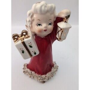 Vtg Christmas Angel Figurine Spaghetti Trim Lantern Present Fine A Quality Japan