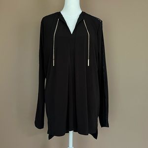 {MICHAEL Michael Kors} Black Tunic Top with Lace & Gold Tassels - Women's Large