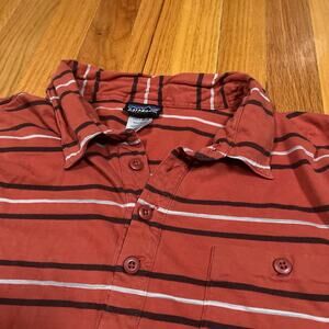 Patagonia Offhand Polo Orange Striped Shirt Medium Organic Cotton Casual Pocket