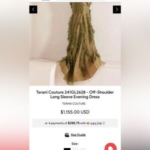 Terani Couture Elegant Olive Green Off-Shoulder Dress