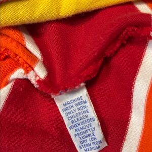 Preppy unique vintage striped polo with chambray blue collar Polo Ralph Lauren men’s XL. Classic heritage polo logo on left chest. 100% cotton knit bright red fun striped polo in red, orange, green, white and yellow stripes with 4 buttons at neck. Split hem. 23.5” pit to pit and 30” shoulder to hem. Excellent used condition no noted stains or snags. Note: red dot on Polo tag. Made in Sri Lanka. Washed in unscented detergent. Nonsmoking 2 hypoallergenic dog household. Vintage, VTG, Y2K, light blue, chambray collar, orange, green, heritage polo