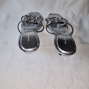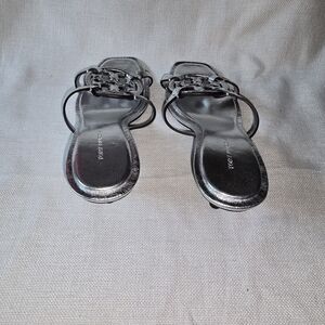 Elevate your style with these chic silver sandals. Perfect for any occasion, these shoes offer both comfort and elegance.