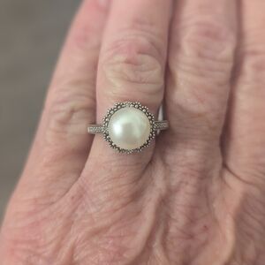 Elegant sterling silver (stamped 925) pearl ring with a timeless vintage-inspired design.