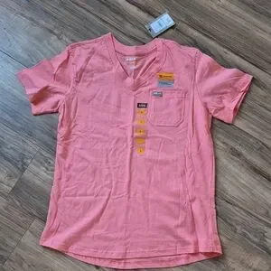 Vibrant coral tee with a classic V-neck. Soft and comfortable for daily wear.