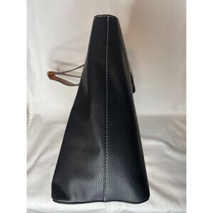 London Fog Mercer Tote w/ Plaid Scarf Black Cognac Trim Leather Handbags NEW