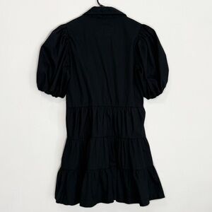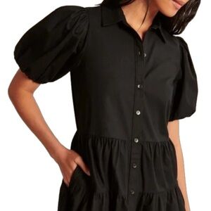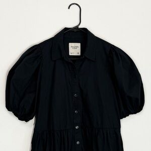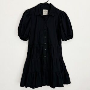 Abercrombie & Fitch Poplin Puff Sleeve Button Down Tiered Mini Dress Black XSP