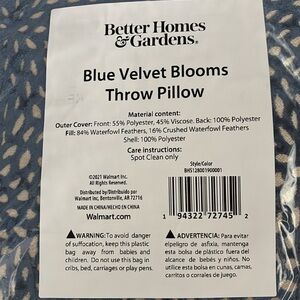 Better Homes & Gardens feather filled,removable zipper cover,velvet textured