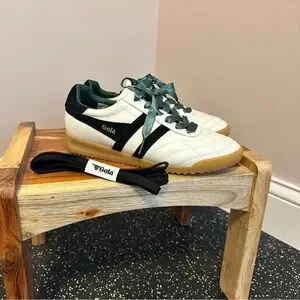 Gola sneakers in white and black. Ribbon laces add a pop of color. Black laces included as well. Very good condition. Worn indoors once. Fits like 8.5-9.