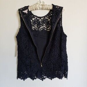 Nanette Lepore Sleeveless Floral Lace Top Size Large Dark Navy Blue