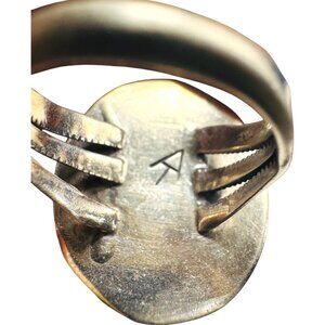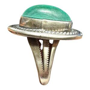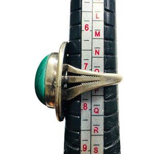 Vintage Navajo Sterling Silver Ring With Malachite Cabochon Stone Size 7.5