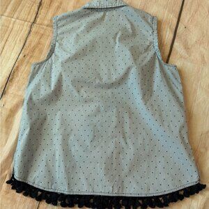 Woman’s Size Large Democracy Sleeveless Button Down Shirt Tassels