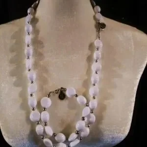 NEW. Classy Beautiful Bright White 100% Lucite Bead Necklace Matching Bracelet
