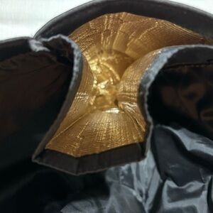 Black neoprene with gold lettering