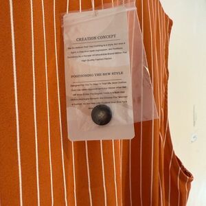 NWT XXL Adjustable Vest Skirt Suit. Stylish deep pumpkin colored vest and generous maxi skirt set with white pinstripes. Perfect for a chic fall lewk. Mix and match with your fall closet staples or wear together for a monochromatic moment. Pair this with a cute hat and head to the pumpkin patch camera ready for Magic hour 🪄 📸