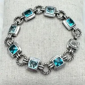 David Yurman .925 Blue Topaz Renaissance Chain Bracelet