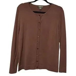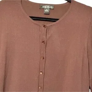 August Silk Silk Blend Chocolate Brown Long Sleeve Button Front Cardigan Sweater