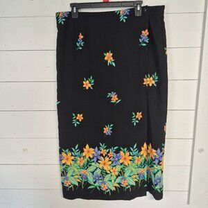 Sag Harbor Womens Floral Print Black Midi Skirt Size 18 Polyester Elastic Waist