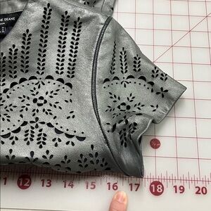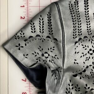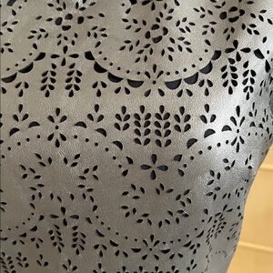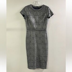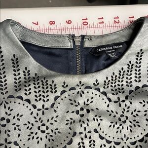 CATHERINE DEANE Modern Leather & Silk Eyelet/Cut Out Gunmetal Party Dress SZ 6