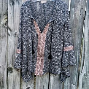 Anthropologie Altar’d State Riada tunic- size small pullover swing top with trumpet bell sleeves. Boho vibe-bust -25 inches length-26 inches