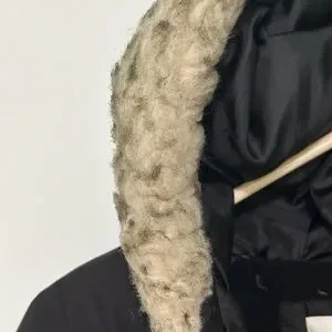 Condition: Good pre-owned condition. It appears the jacket was put in dryer and the faux fur was melted (see photo).